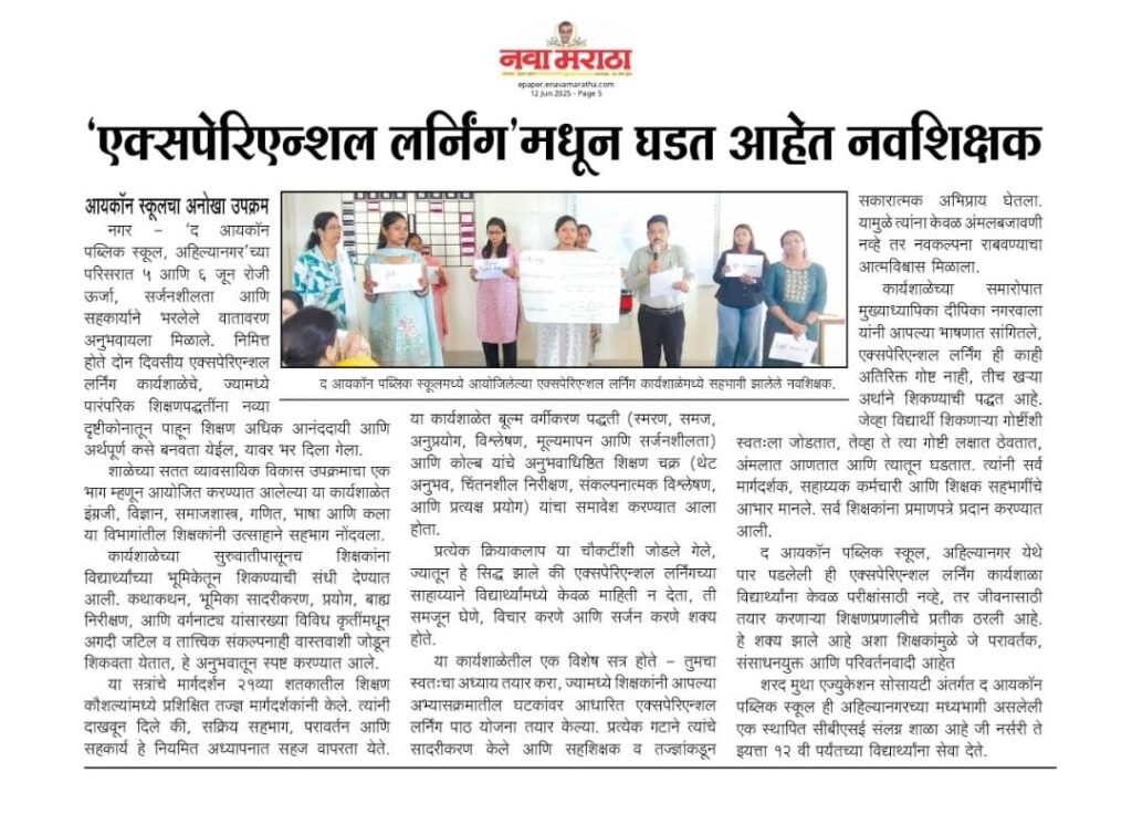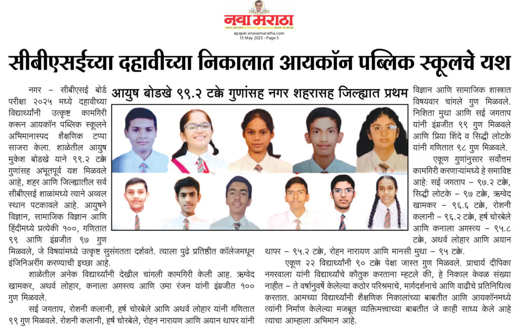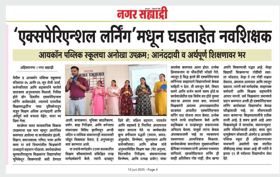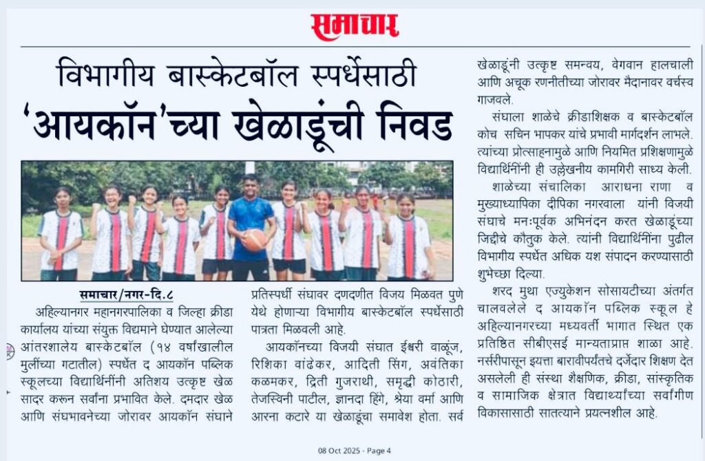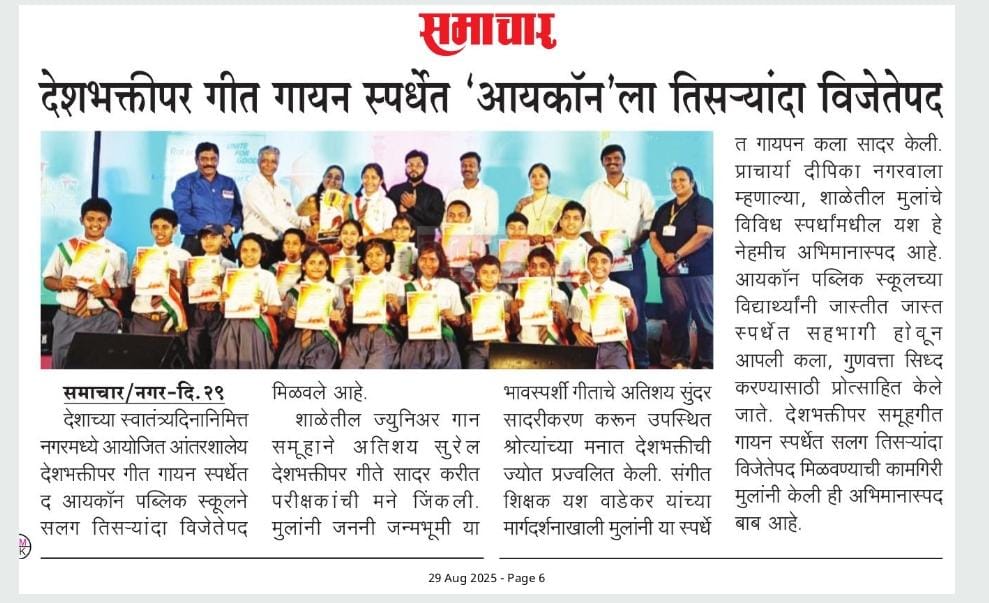 Icon's Basketball Victory Selected for state-level basketball competition A Hat-trick of Pride, A symphony of patriotism! STEM Seminar International Yoga Day Experiential Learning at Icon Experiential Learning Programme Experiential Learning Grade 10 Board Results Grade 10 Topper– Ayush Bodhke Honoring Excellence & Leadership Investiture Ceremony 2025-26 Celebrated Granparents Day 2025 Knowledge Fair 2025 Winners at the Dance Competition 2025 Winners at the Singing Competition 2025 Awarded by Vidya Kiran 2024 Celebrated Sports Day 2024 First Rank in JEE Exam Winners at the Young Scientist Competition 2024-25 Ideal School Award 2024-25 Graduation Day of Fledgllngs 2024 CBSE Teacers Training 2024 Public Speaking Competition International Yoga Day 2024 An International Exchange Summer Camp(1) 2024 Summer Camp(2) 2024 Participation in Summer Competition Ignite Meraki Competition Vasota Fort Trek Camp 2023-24 School Investiture Ceremony (2023-24) Awarded to the National level Echoes of the Ages Award at Elocution Competition Independence Day Celebration
